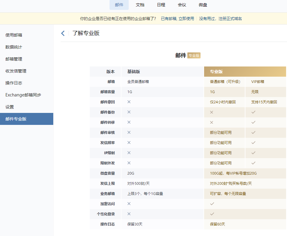 企业微信邮箱--管理端功能2022-12-05 16:56:33 企业微信邮箱--管理端功能登录企业微信管理后台,在“协作-邮件”中可以使用丰富专业的管理端功能。 上一篇:企业微信邮箱--如何禁用企业成员邮箱和业务邮箱 下一篇:企业微信邮箱--成员管理功能 热门内容 企业微信邮箱--成员管理功能 企业微信邮箱--管理端功能 企业微信邮箱--如何禁用企业成员邮箱和业务邮箱 企业微信邮箱--回收站功能 如何批量删除企业成员收到敏感/举报等类型邮件?-删除成员收信功能 腾讯企业邮箱常用登录方式 企业邮箱如何注册? 10个有效提高网站应用安全的措施 如何设置企业邮箱域名所有权? 网站的参数及流量 网站的定义 企业邮箱的定义? 私有化的部署 开放的生态 微信互相配合 企业微信-----企业移动办公工具 企业微信是专业的企业通讯工具 如何更改邮箱创建者?